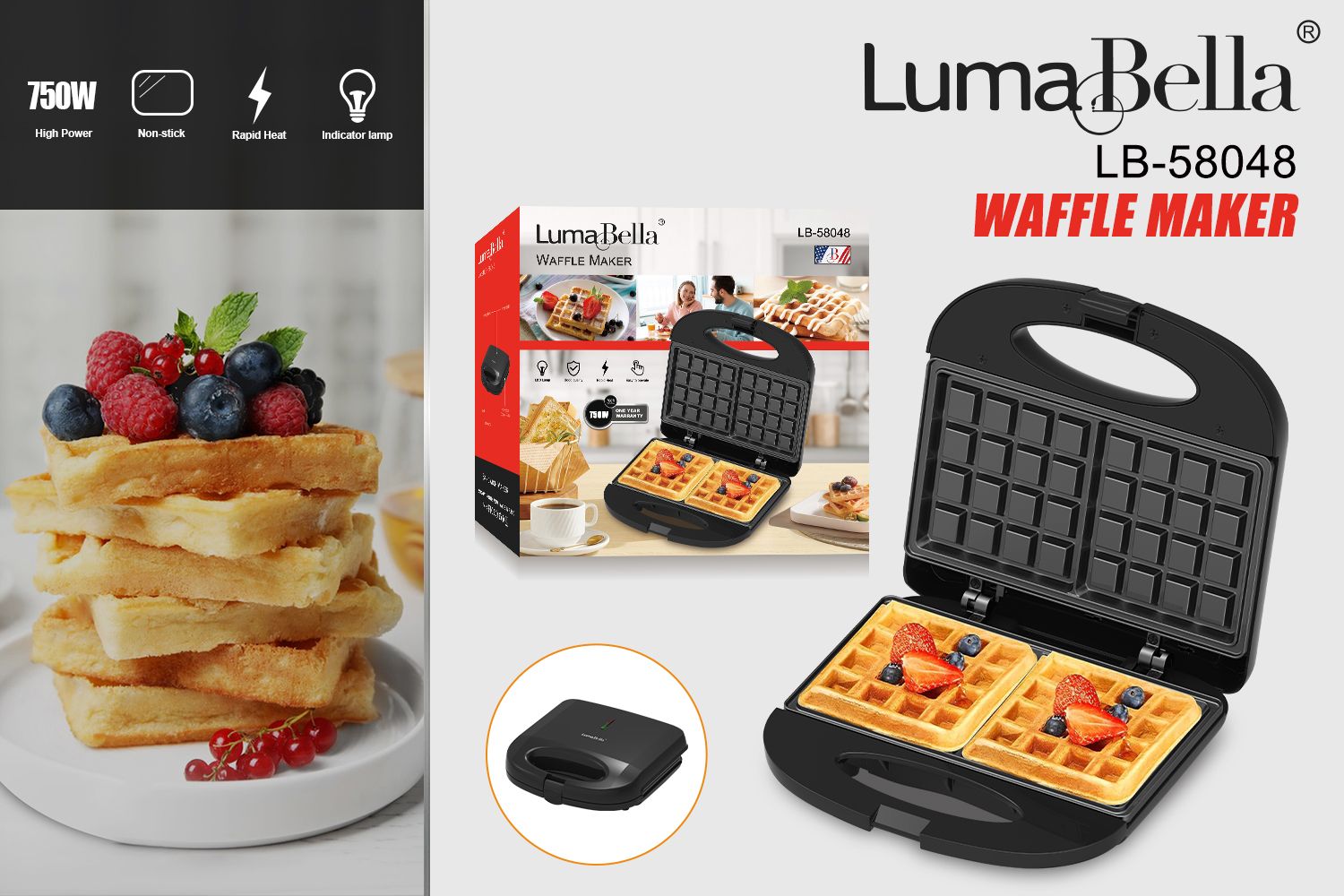 وافل ميكر 750 وات لوما بيلا LB-58048