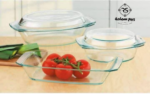 متوفر طقم طواجن حراري 5 قطع بخامة قوية تتحمل درجات الحرارة العالية، مثالي للطهي في الفرن وتقديم الأكلات بشكل شيك على السفرة.