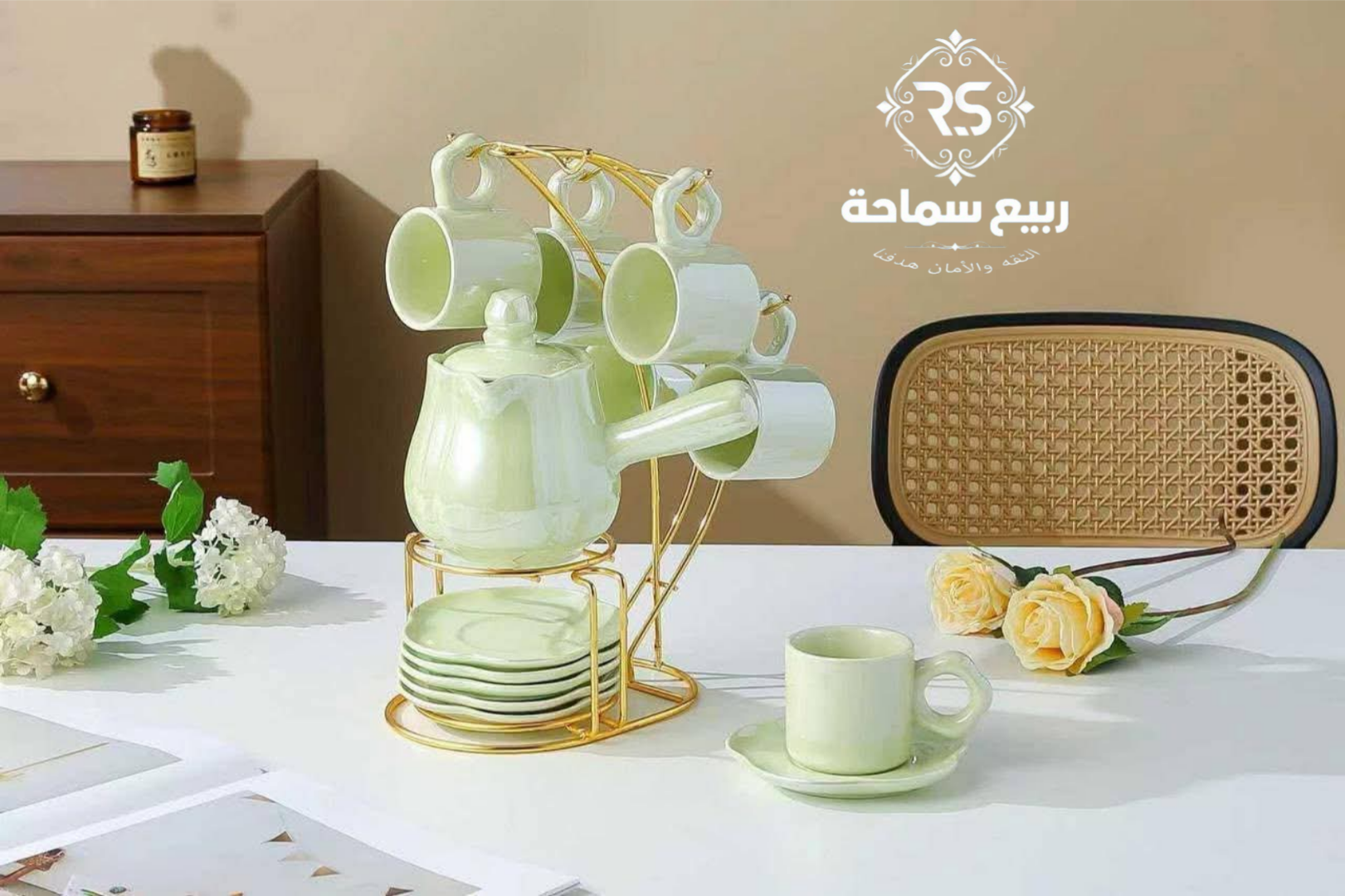 متوفر طقم قهوة بالكنكة لستر بتصميم أنيق ولمعة مميزة تضيف فخامة لركن القهوة في بيتك، مناسب لتحضير وتقديم القهوة بشكل شيك وراقي.