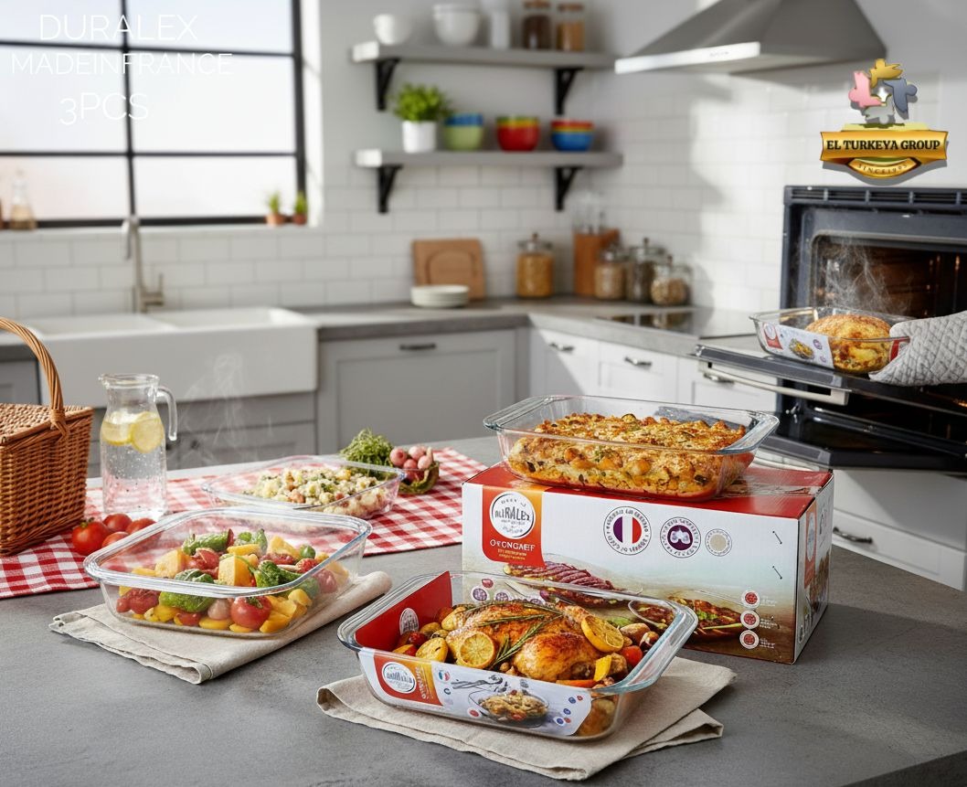 متوفر طقم طواجن فرنساوي أصلي بتصميم عملي وأنيق يناسب التقديم والطهي في الفرن، خامة قوية تتحمل الحرارة وتعطي شكل مميز على السفرة.