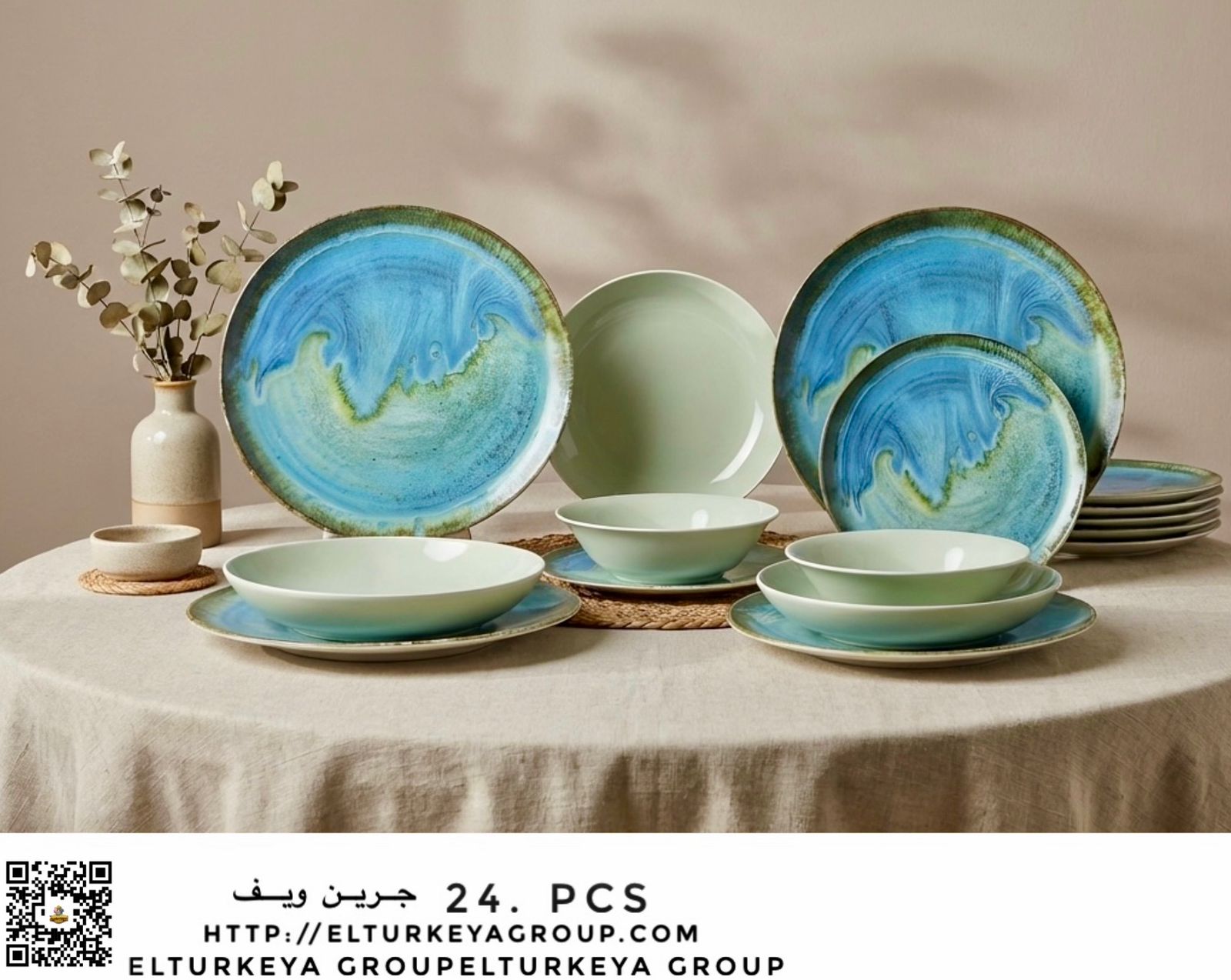 متوفر الآن طقم عشاء 24 قطعة من فتحي محمود بتصميم أنيق وجودة مميزة، مناسب للاستخدام اليومي ويضيف لمسة جمال لسفرتك.