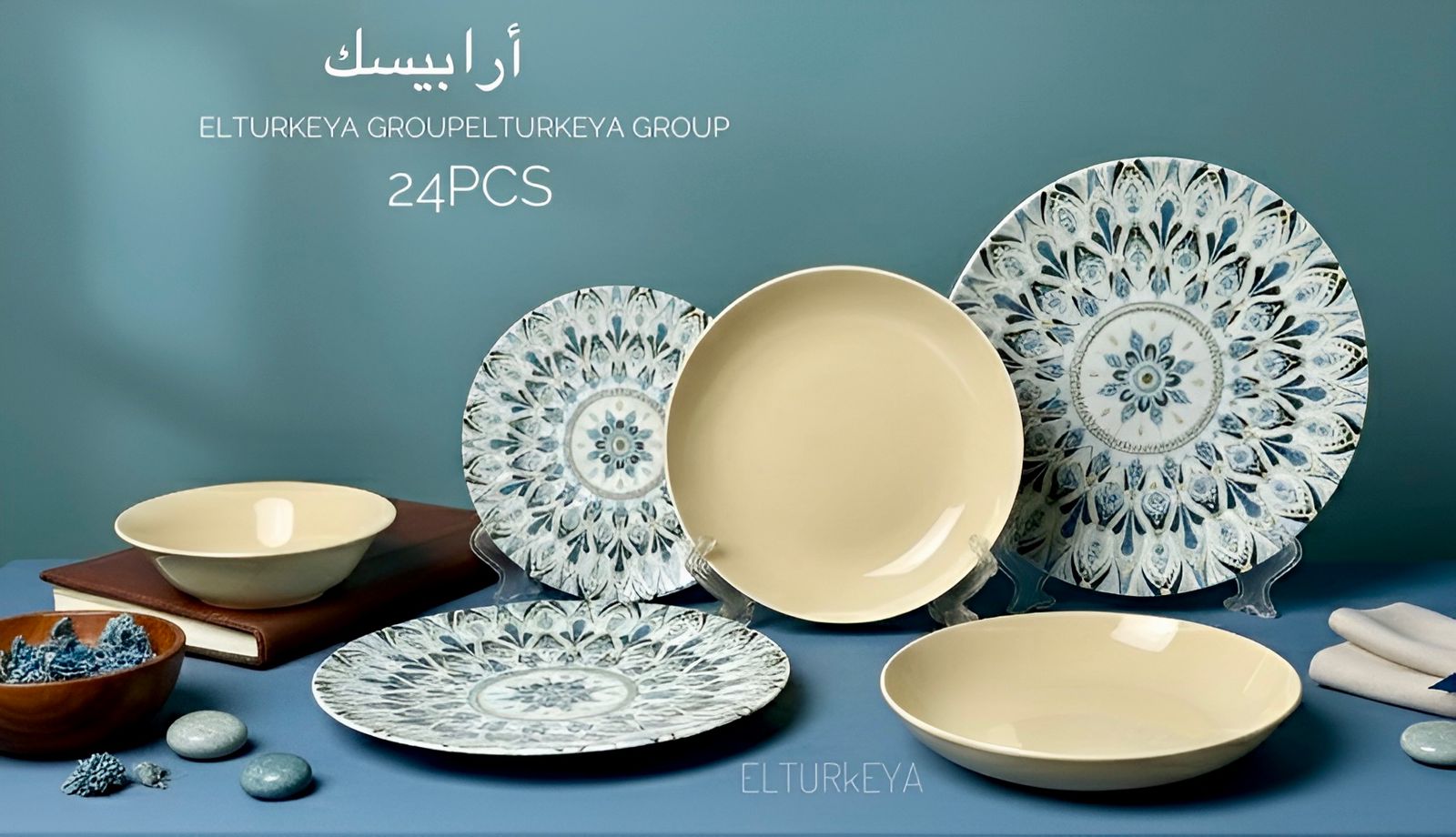 طقم عشاء 24 قطعة – فتحي محمود 🍽️✨